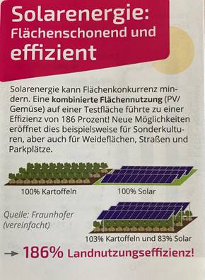 „Solarparks erzeugen 40-80 mal mehr Energie pro Hektar als der Anbau von Energiepflanzen wie Mais“, schreibt der Agrarwissenschaftler und Projektberater Ralf Schnitzler auf seiner Website Gemeinsameinfachmachen.de.